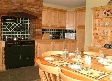 Downstairs is very spacious with separate hall and large luxuriously furnished lounge featuring an inglenook brick fireplace with wood burning stove. The kitchen/dining area has all the features of a country farmhouse kitchen with stone floor, range and large pine table where the whole family can dine together. Modern conveniences have not been forgotten, a dishwasher, large fridge and freezer have all been built into the traditional kitchen by a local craftsman using maple and old red brick. Satellite TV/video, radio/CD player and mobile phone are all provided.