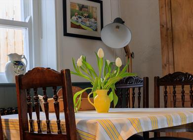 While the cottage has been extensively renovated, it still retains its historic charm with many original features with rough plastered interior walls, wooden beams and panelling. We worked hard to ensure that the renovation and refurbishment was as kind to the environment as possible so we re-cycled and re-purposed as much as we could. The furnishings are a mix of antique, vintage and second-hand finds that come together to create a cosy, relaxed, eclectic vibe that's stylish and reflects our commitment to recycle and re-use.