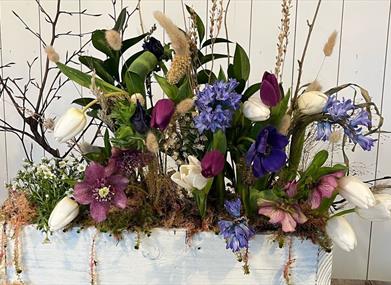 Why not join us to create a unique May Flower box at this newly built studio at the School Garden? Located at the Schoolmaster’s House, a period country home near the historic Ballycopeland Windmill, The School Garden is steeped in history. Your host Janice will expertly guide you on a 30 minute walk, foraging in this beautiful rural location, and in sustainable floristry techniques as you work with a mixture of locally grown flowers and foraged ingredients. You will arrange your flowers inside a lovely handmade wooden box which can be repurposed afterwards. Refreshments and School Cake will be served on arrival and a sumptuous Ploughman’s Lunch will be provided on a hedgerow styled table.